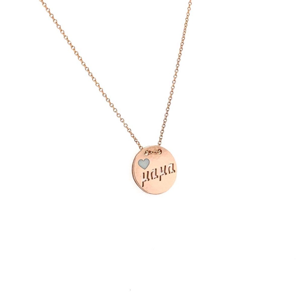 Μενταγιόν γυναικείο από ρόζ χρυσό 9Κ με μοτίφ στρογγυλή πλάκα με επιγραφή ''μαμά''