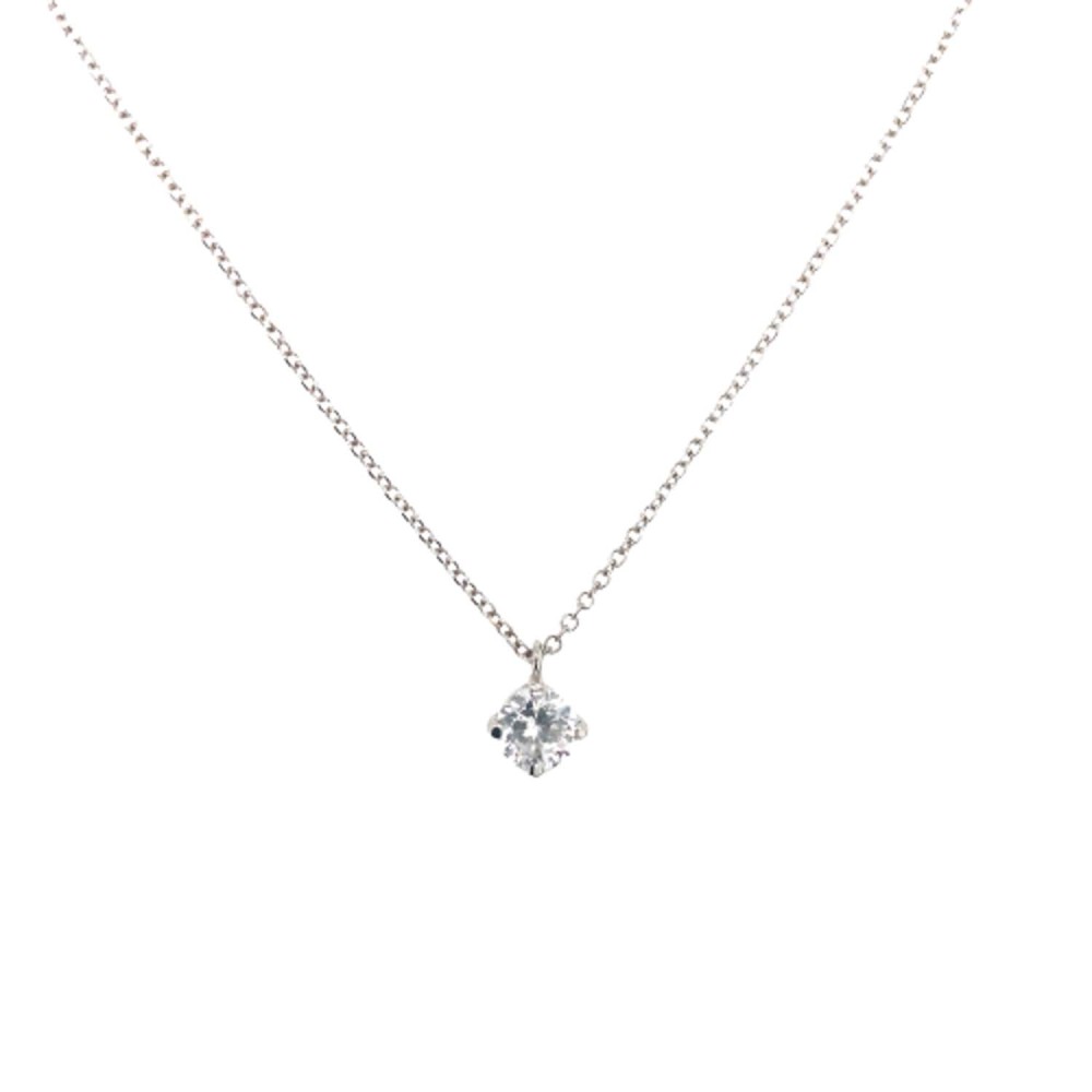 Μενταγιόν μονόπετρο από λευκόχρυσο 14Κ με λευκό ζιργκόν σε καστόνι με τέσσερα δόντια.