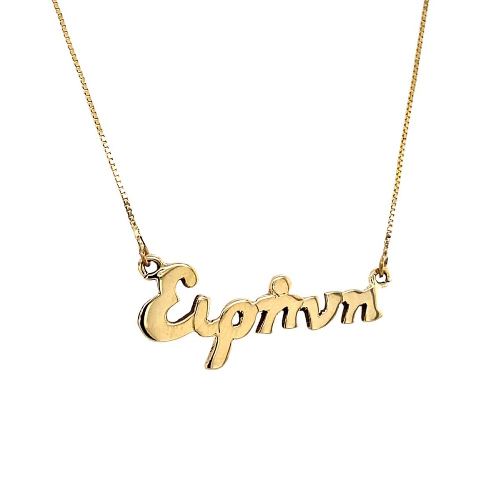 Μενταγιόν γυναικείο από χρυσό 14Κ κρεμαστό στοιχείο το όνομα ''Ειρήνη''