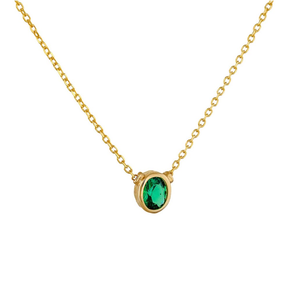 Μενταγιόν χρυσό 14Κ με κρεμαστό οβάλ στοιχείο πράσινη πέτρα.