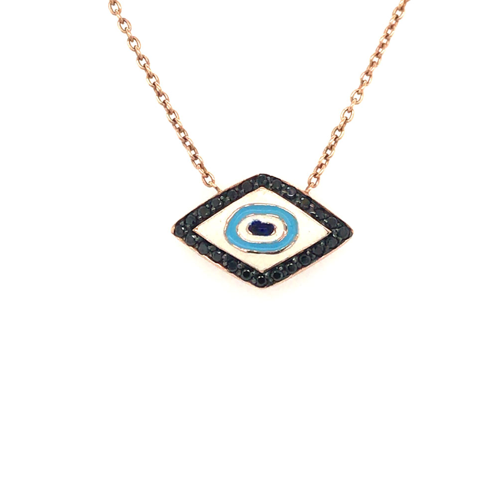 Μεταγιόν ροζ χρυσό 14 καρατίων με μπλε και λευκό σμάλτο και μαύρα ζιργκον με αλυσίδα