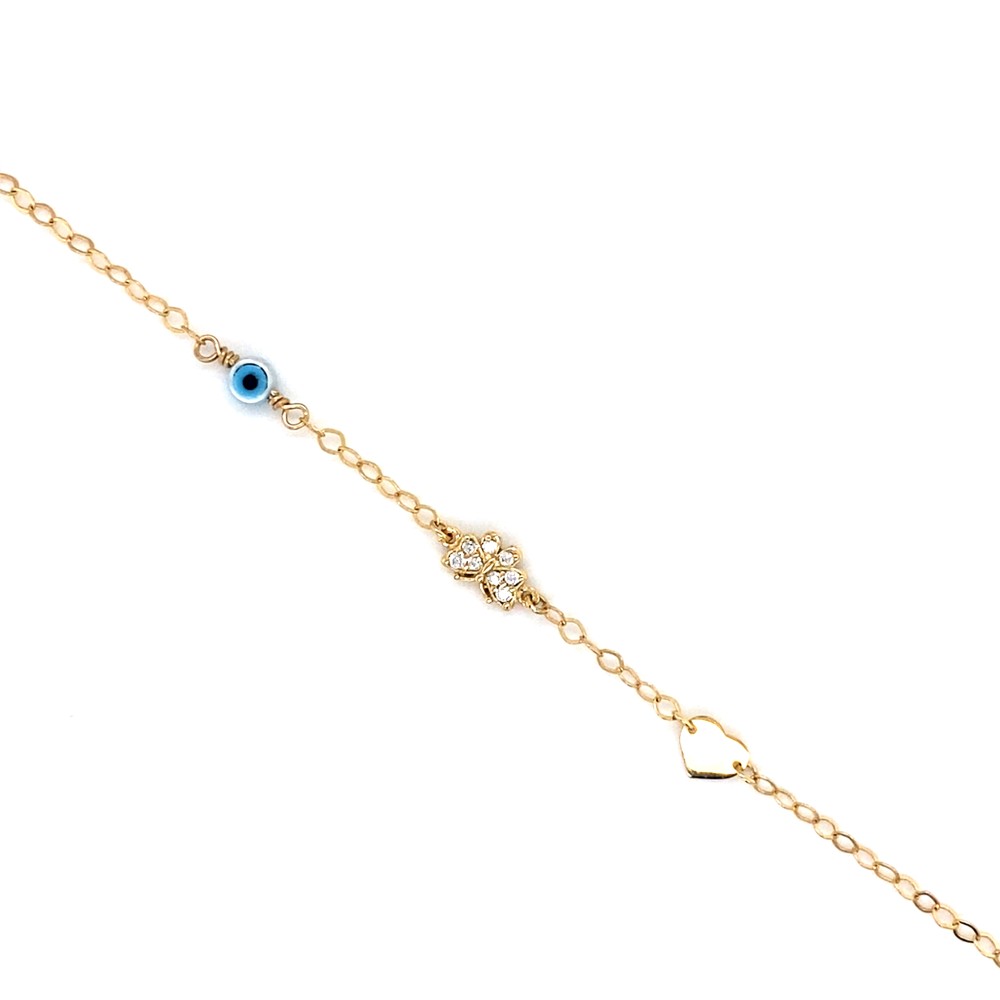 Βραχιόλι παιδικό για κορίτσι από χρυσό 9Κ με ματάκι, πεταλούδα και καρδιά.