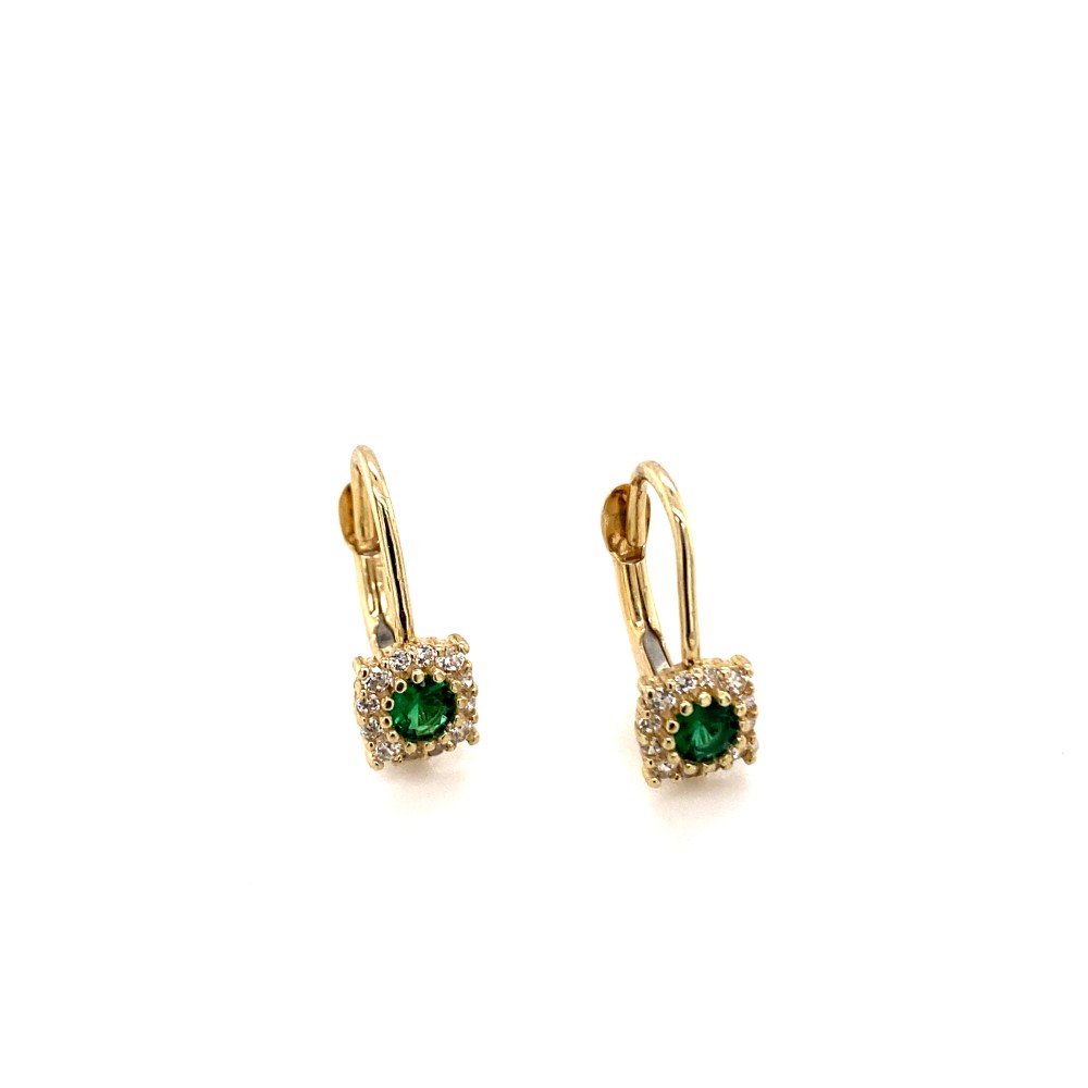 Παιδικό σκουλαρίκι κρεμαστό για κορίτσι από χρυσό 9Κ με πράσινο και λευκά ζιργκόν.