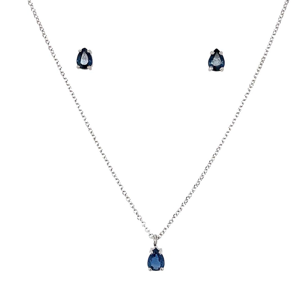 Σετ δύο τεμαχίων μενταγιόν σκουλαρίκια από λευκό χρυσό 18Κ με πολύτιμη πέτρα ζαφείρι.