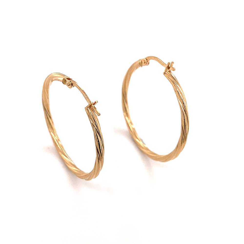Σκουλαρίκια κρίκοι στριφτοί από χρυσό 9Κ με επιφάνεια λουστρέ.