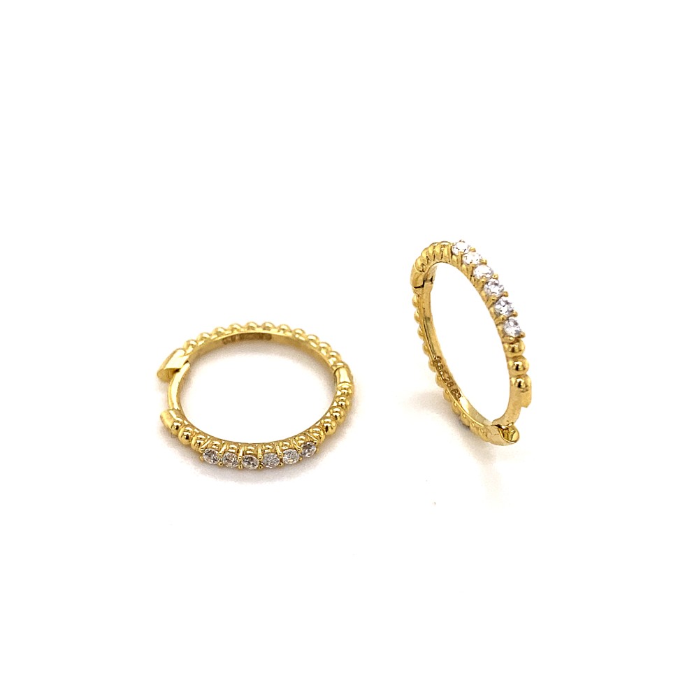 Χειροποίητα γυναικεία σκουλαρίκια κρίκοι από χρυσό 14Κ με λευκά ζιργκόν.