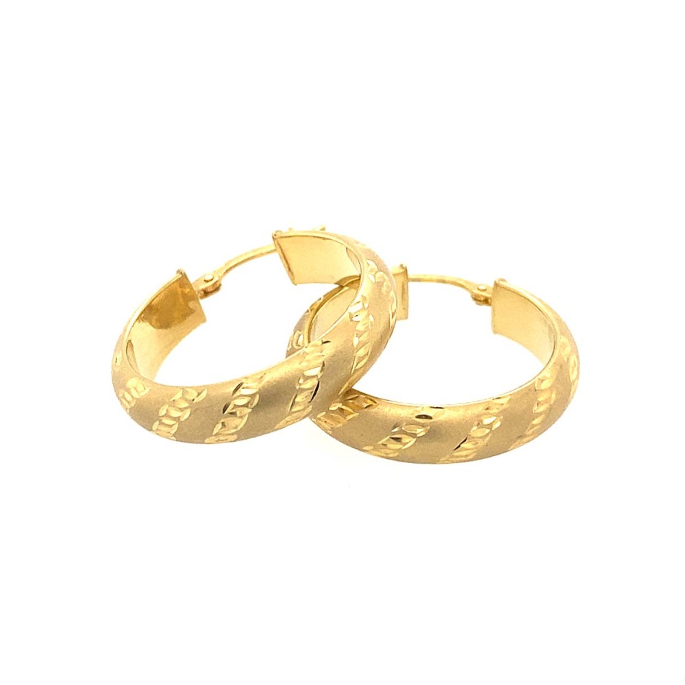 Σκουλαρίκια κρίκοι από χρυσό 14Κ φαρδιά γάμπα με σχέδιο.