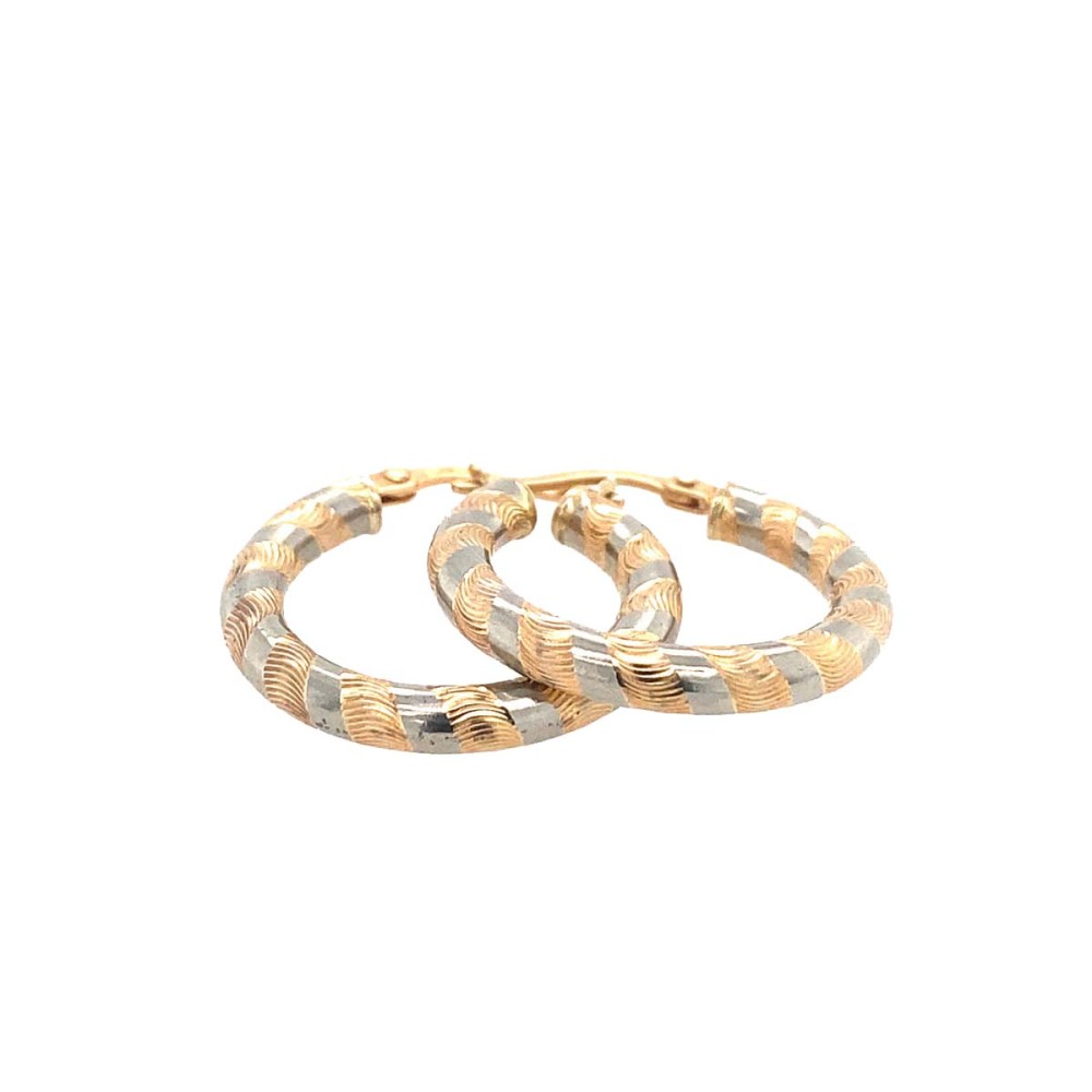 Σκουλαρίκια κρίκοι από δίχρωμο χρυσό 14Κ λευκό-ρόζ με επιφάνεια λουστρέ.