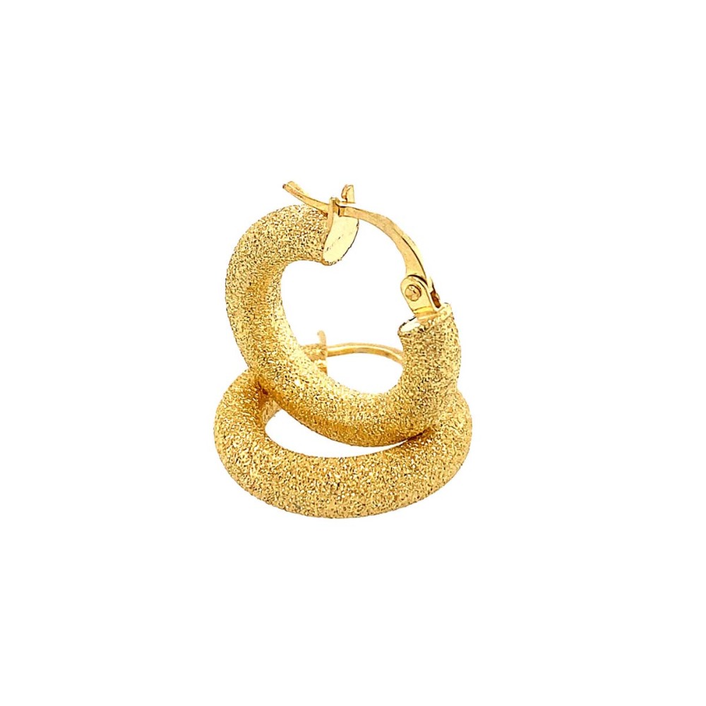 Σκουλαρίκια κρίκοι από χρυσό 9Κ. Η επιφάνεια τους είναι σαγρέ και γυαλιστερή που τα κάνει ακόμα πιο εντυπωσιακά.