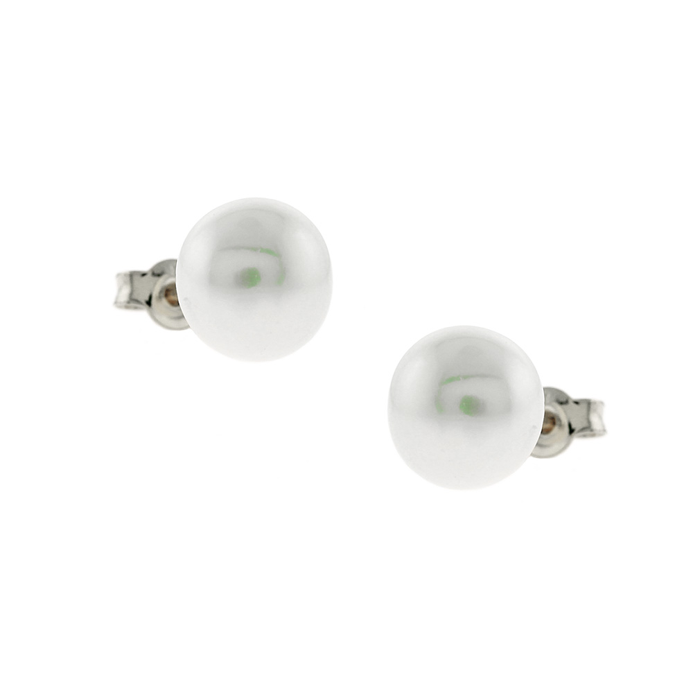 Σκουλαρίκια καρφωτά από λευκό χρυσό 14Κ με μαργαριτάρι.