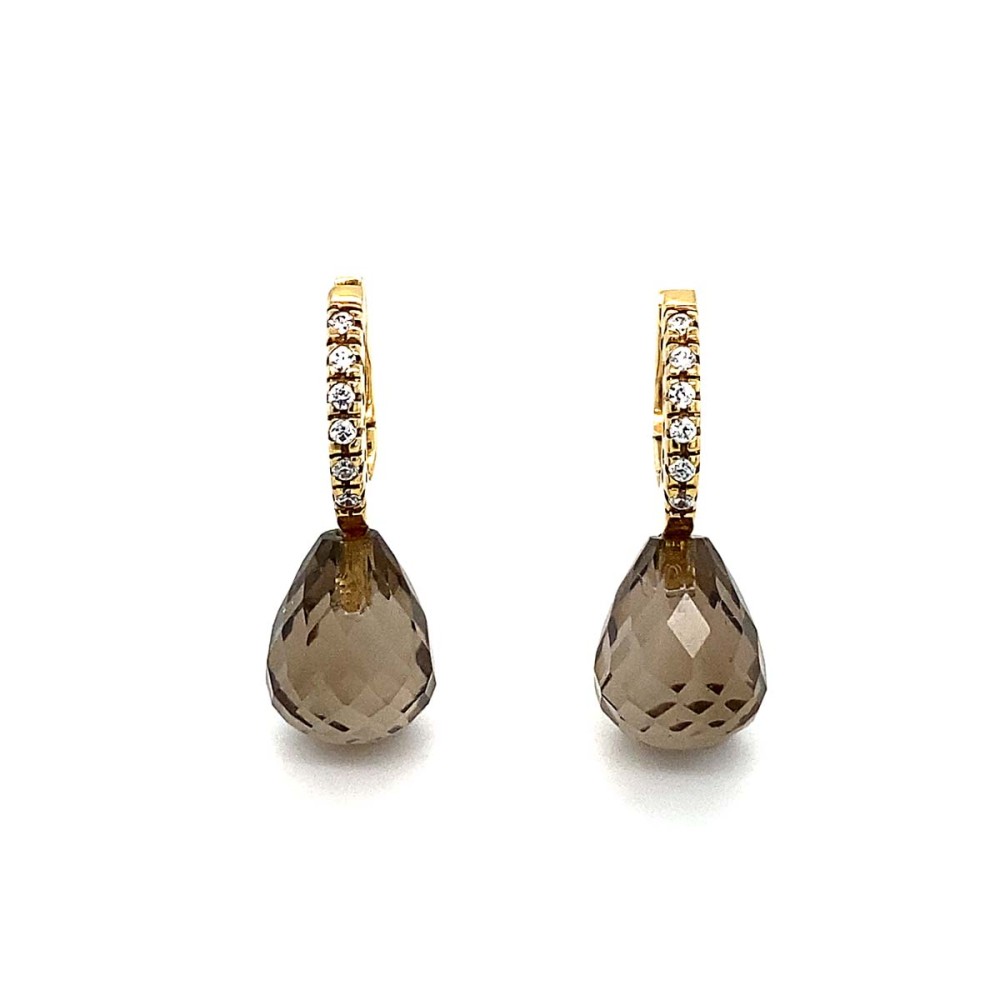 Σκουλαρίκια από χρυσό 14Κ με πέτρα smoky quartz και λευκά ζιργκόν.