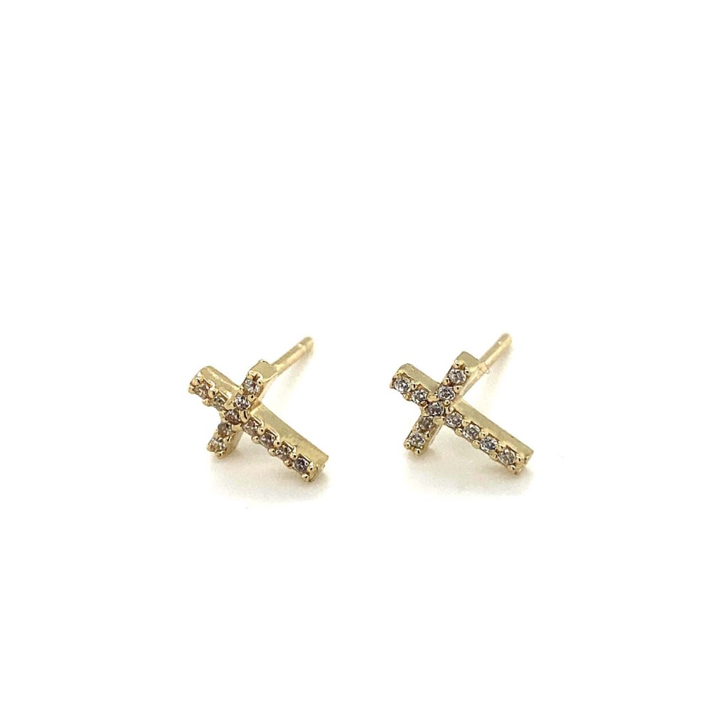 Σκουλαρίκι παιδικό για κορίτσι από χρυσό 9Κ σχέδιο σταυρουδάκι με λευκά κρύσταλλα ζιργκόν.