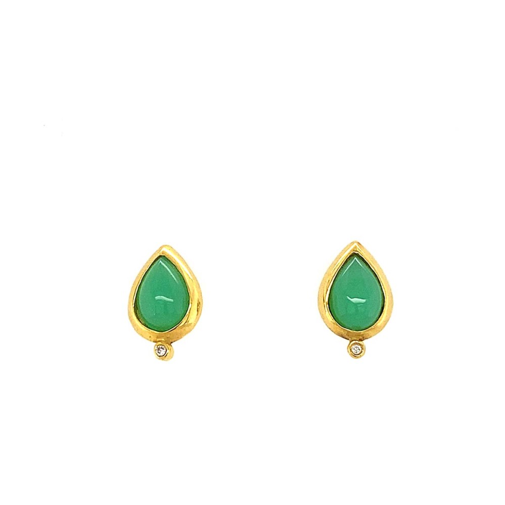 Σκουλαρίκια από χρυσό 18Κ καρφωτά με ημιπολύτιμη πράσινη πέτρα και διαμάντι.