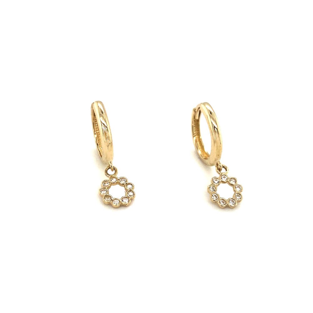 Γυναικεία σκουλαρίκια από χρυσό 14Κ με κρεμαστό στοιχείο διακοσμημένο με πέτρες ζιργκόν.