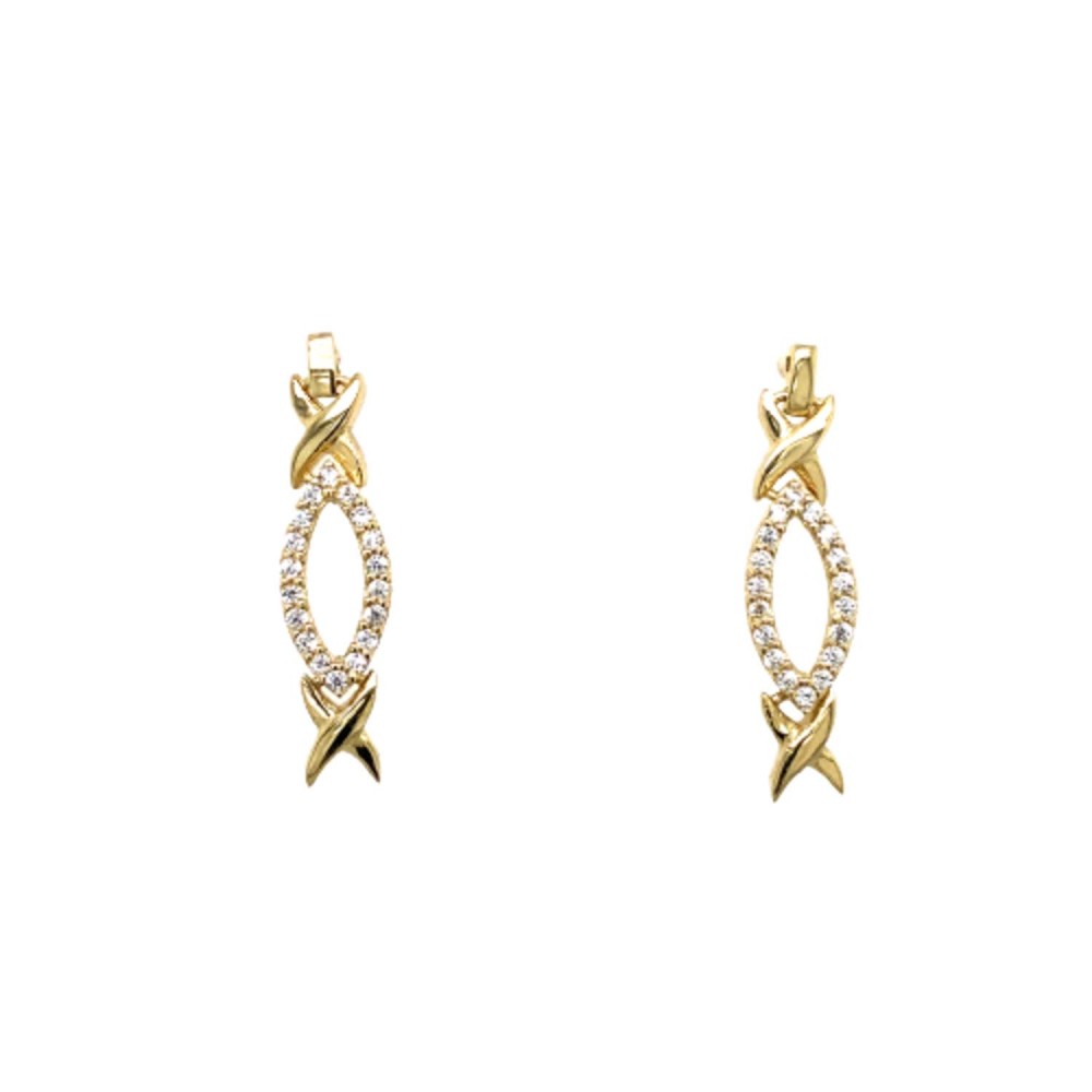Γυναικείο σκουλαρίκι από χρυσό 14Κ, καρφωτό, κρεμαστό οβάλ σχέδιο με λευκά ζιργκόν.