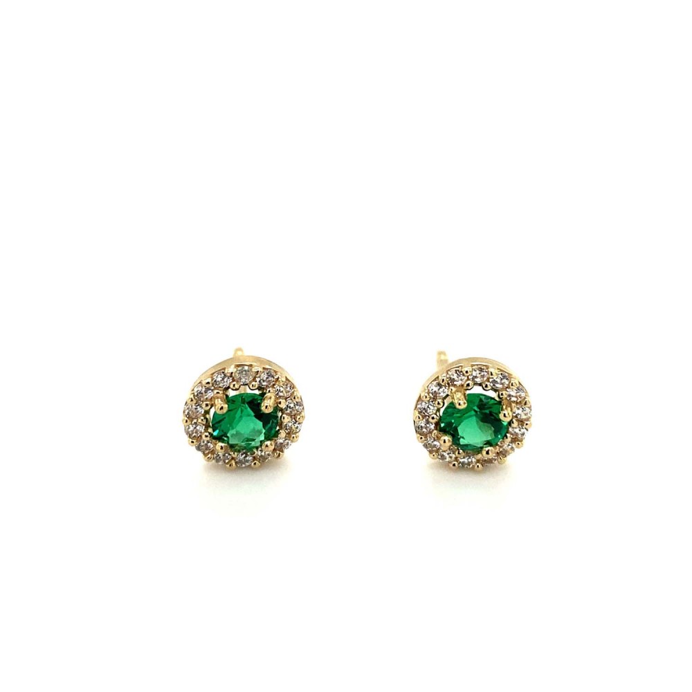 Σκουλαρίκι καρφωτό ροζέτα από χρυσό 14Κ με στρογγυλή πράσινη πέτρα.