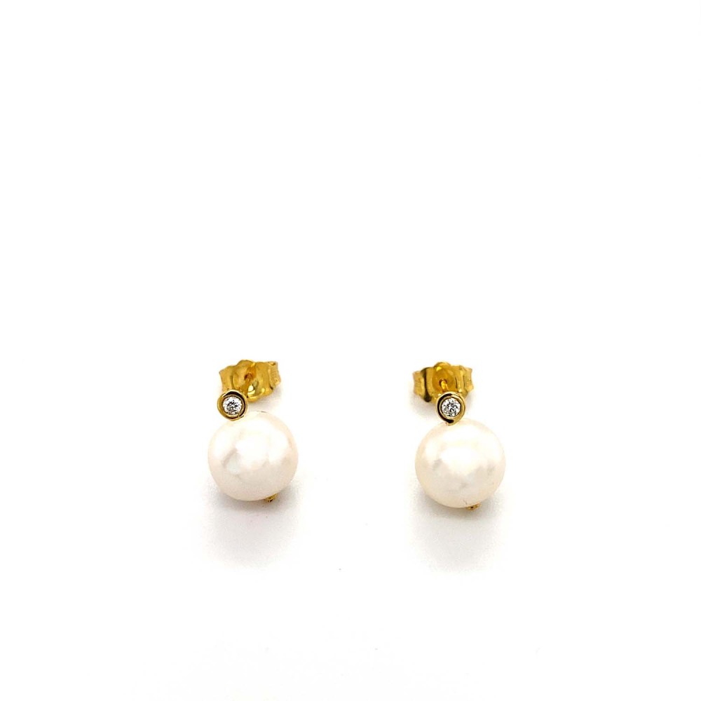 Γυναικεία σκουλαρίκια καρφωτά από χρυσό 14Κ με μαργαριτάρι και διαμάντι συνολικού βάρους 0,04ct.