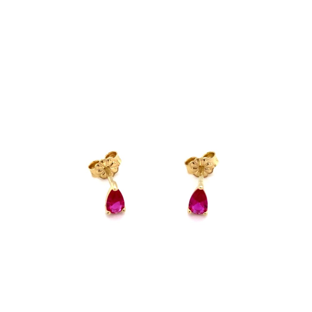 Γυναικεία σκουλαρίκια καρφωτά από χρυσό 14Κ με κόκκινη πέτρα ζιργκόν σε σχήμα δάκρυ.