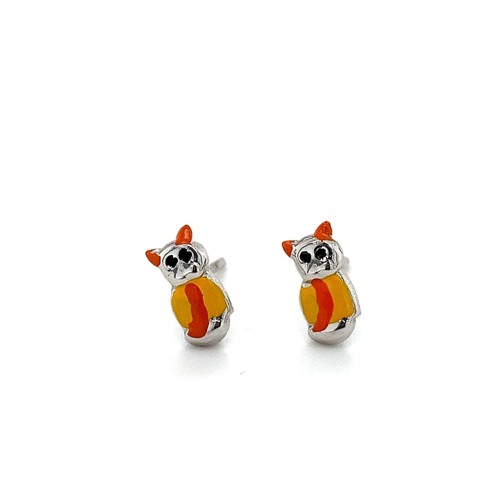 Παιδικό σκουλαρίκι για κορίτσι από λευκό χρυσό 14Κ σχέδιο γατούλα με σμάλτο.
