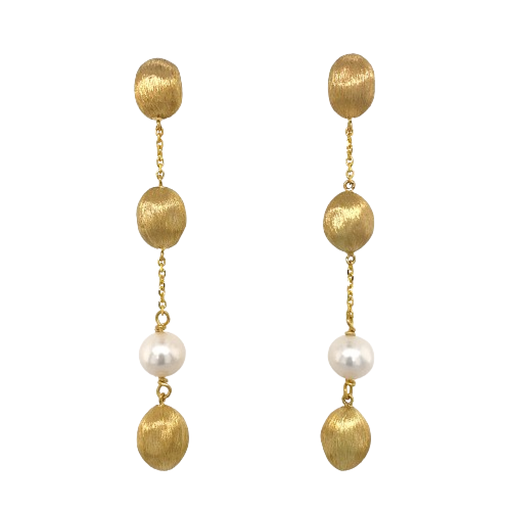 Σκουλαρίκια χειροποίητα κρεμαστά από χρυσό 14 καρατίων με μαργαριτάρια.