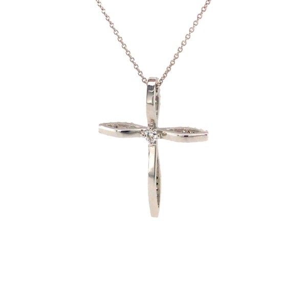 Φύλο: Γυναικείο, Μέταλλο: Χρυσός 18K, Χρώμα: Λευκό, Βάρος: 2,8gr, Πέτρες: Μπριγιάν 0,13ct, Μήκος Αλυσίδας: 42,0cm με κρικάκι στα 38,0cm, Διαστάσεις Σταυρού: 2,5cm x 2,0cm.