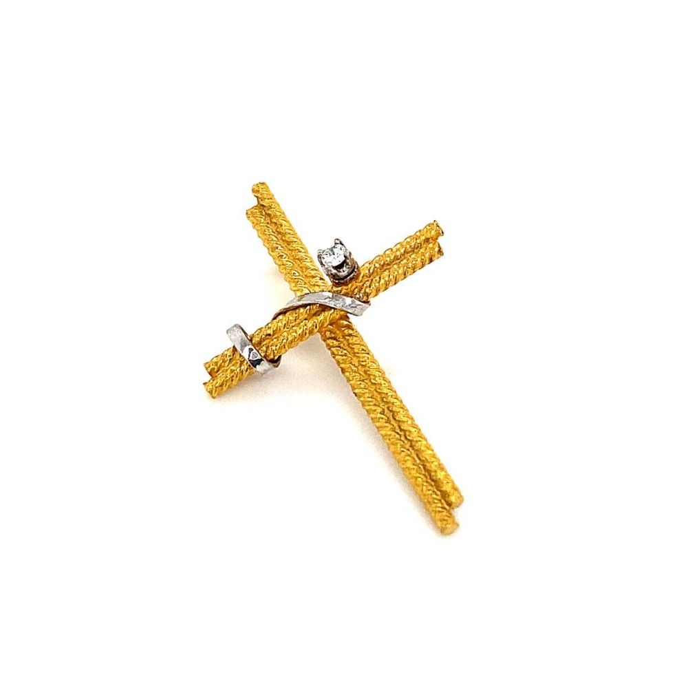 Γυναικείος χειροποίητος Σταυρός από χρυσό 18Κ με λεπτομέρεια από λευκόχρυσο 18Κ με μπριγιάν 0,03ct.