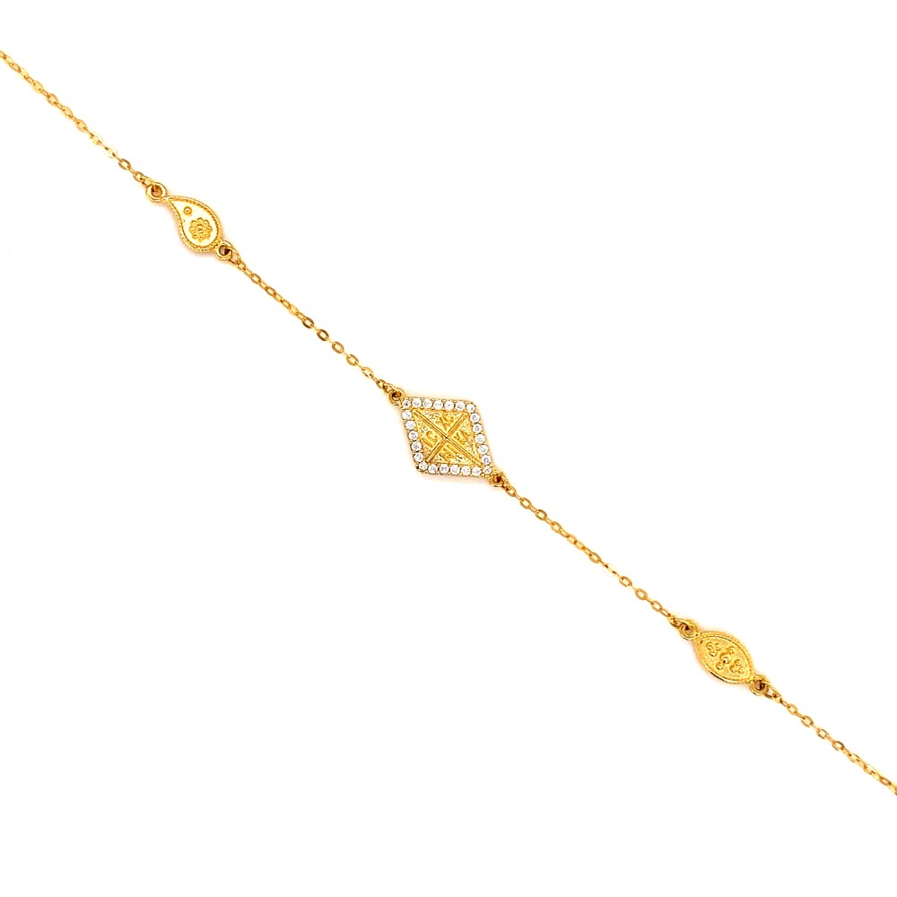 Βραχιόλι γυναικείο από χρυσό 14Κ με χρυσό κωνσταντινάτο στο κέντρο και σχέδιο περίτεχνο στα πλαϊνά στοιχεία.