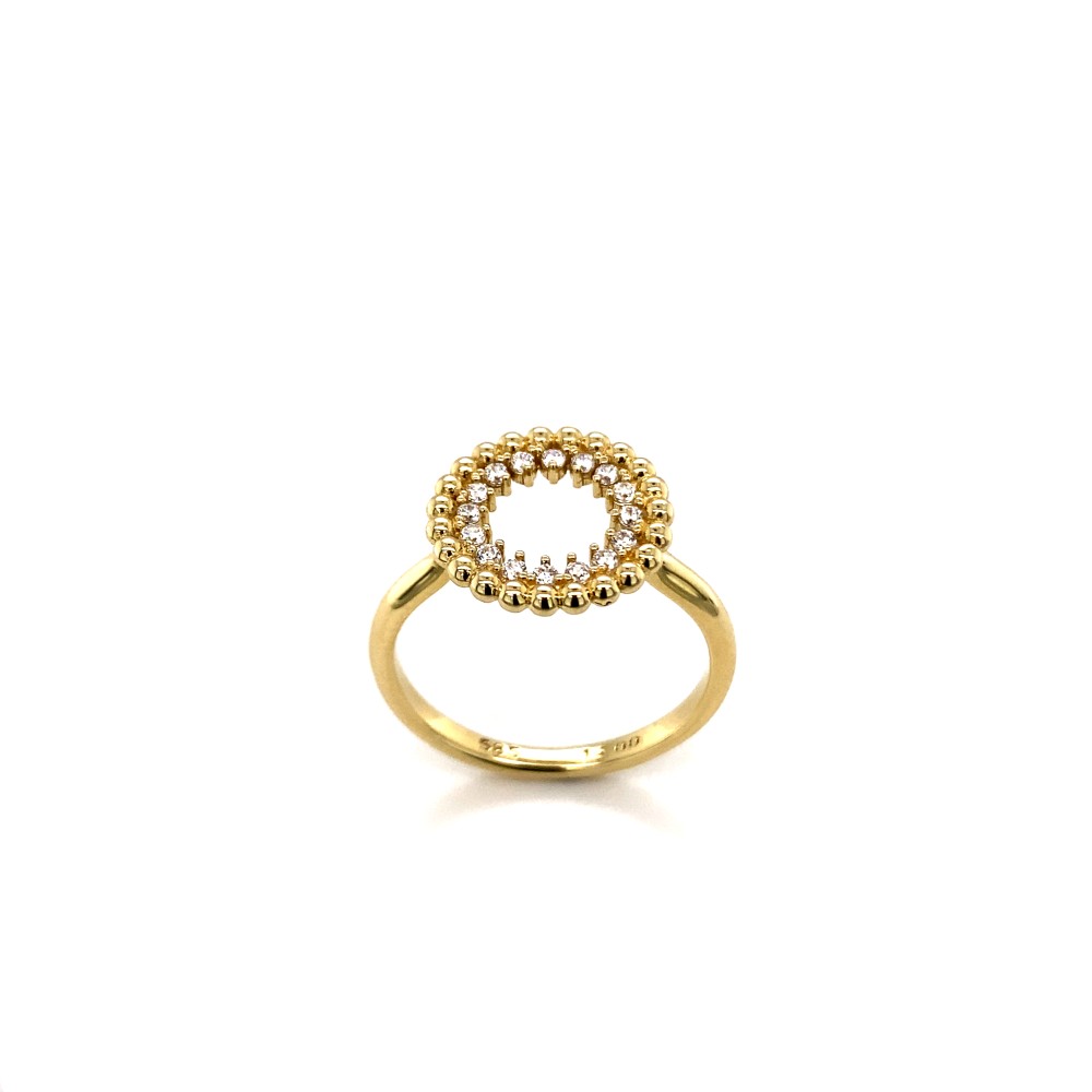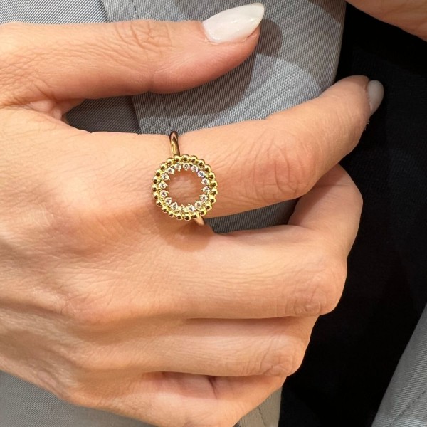 Χρυσό δαχτυλίδι με μοντέρνο σχέδιο και περιμετρικά ζιργκόν.