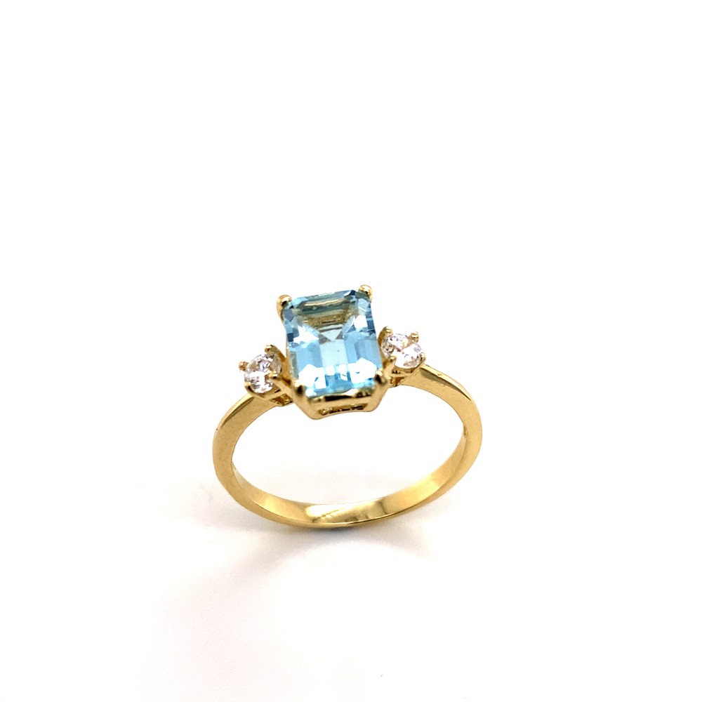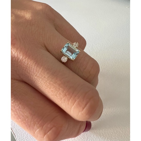 Δαχτυλίδι γυναικείο από χρυσό 14 καρατίων με aquamarine πέτρα και λευκά ζιργκόν.