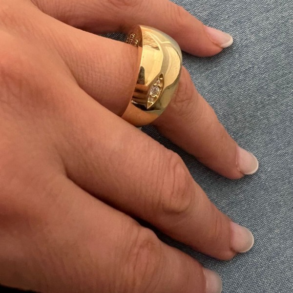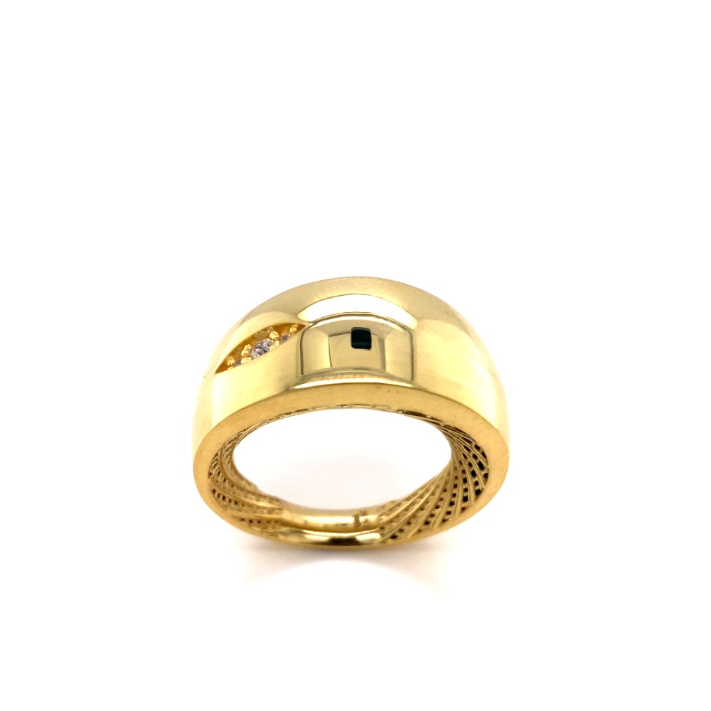 Δαχτυλίδι χρυσό κ14 πομπέ γυαλιστερό με τρεις καρφωτές πέτρες.