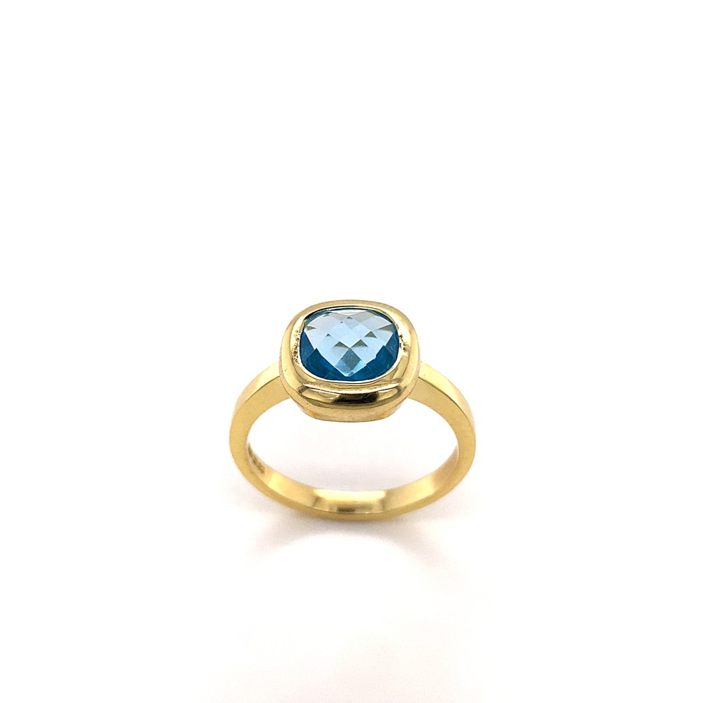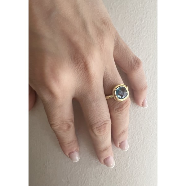 Xρυσό δαχτυλίδι κ14 με μπλε ζιργκόν , London blue .