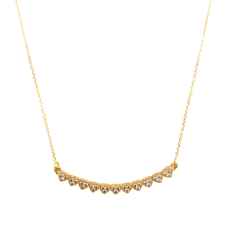 Μενταγιόν από κίτρινο χρυσό 14Κ με σχέδιο κρεμαστή μπάρα με λευκές καρδιές ζιργκόν.