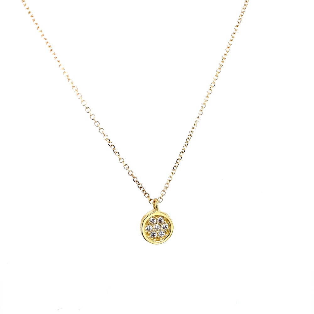 Xρυσό μενταγιόν σε σχήμα στρογγυλό με πέτρες λευκές ζιργκόν.