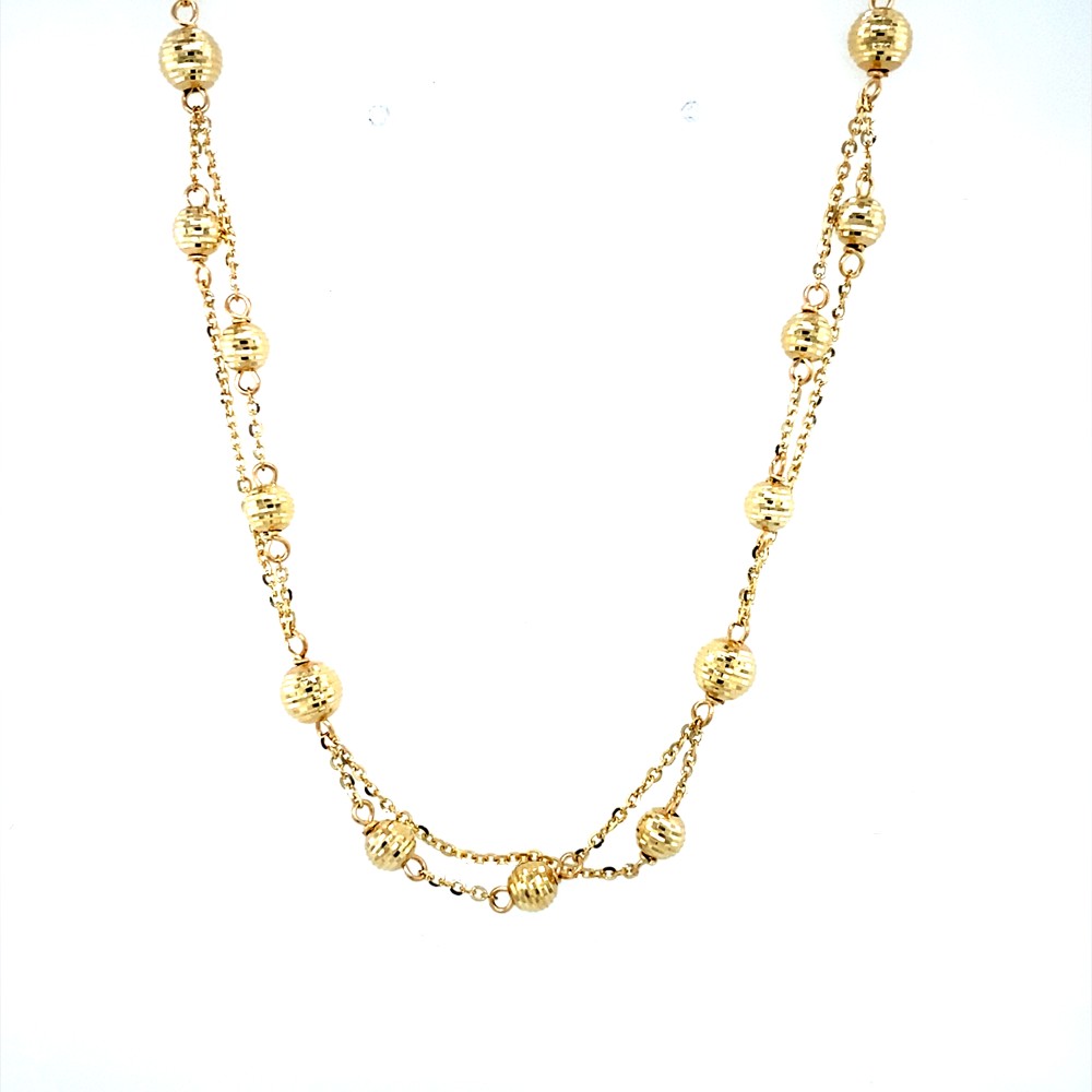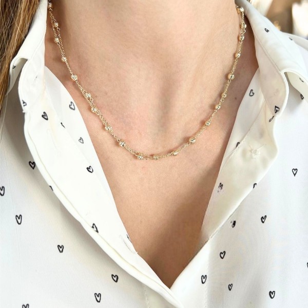 Γυναικείο κολιέ με διπλή αύσίδα από χρυσό 14K καρατίων με χρυσές μπίλιες .