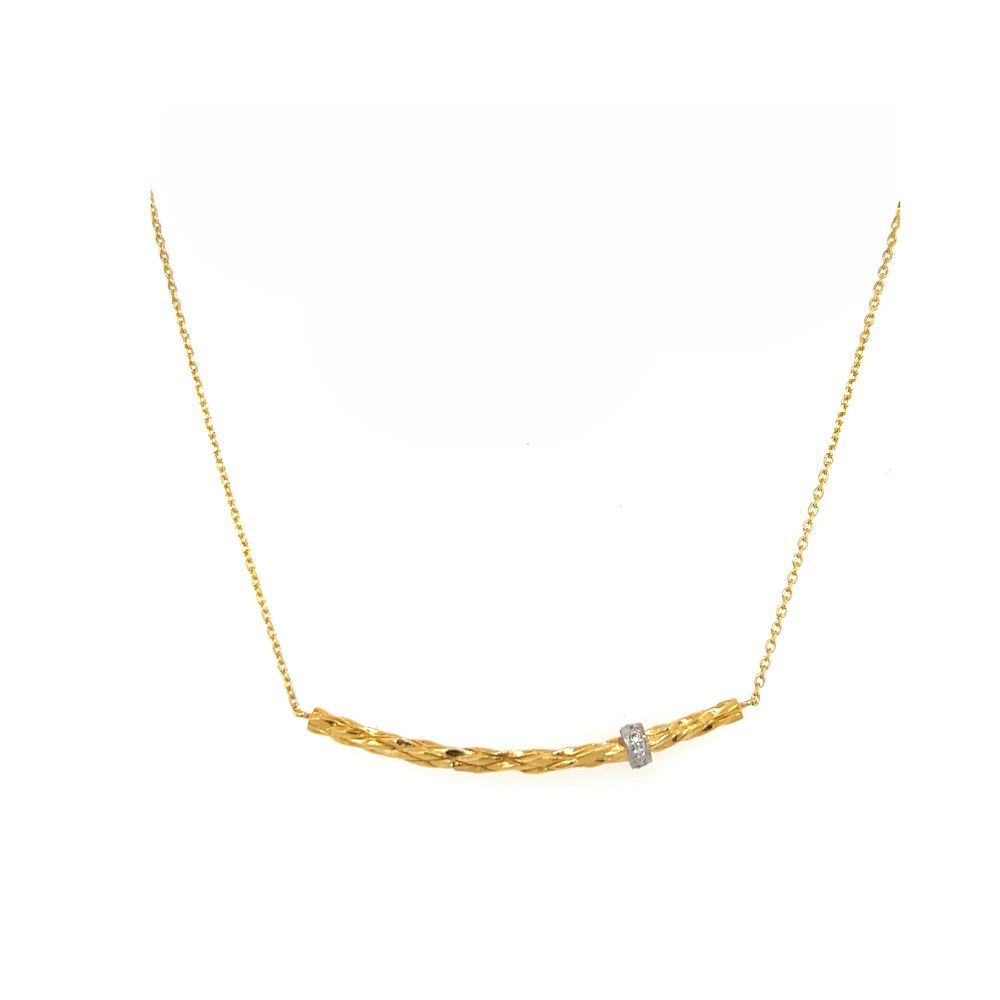 Γυναικείο κολιέ μπάρα με λευκόχρυση λεπτομέρεια με πέτρες ζιργκόν από χρυσό 14Κ.