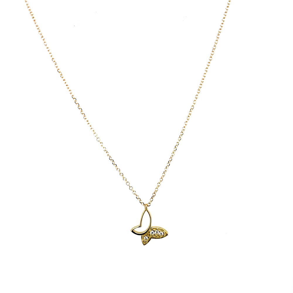 Xρυσό μενταγιόν σε σχέδιο πεταλούδα με πέτρες λευκές ζιργκόν.