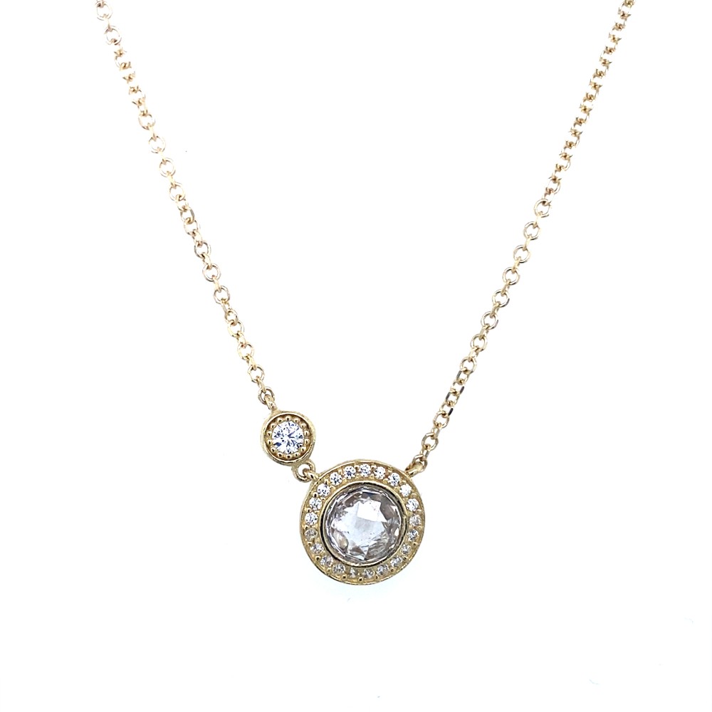 Xρυσό μενταγιόν ροζέτα με πέτρες λευκές ζιργκόν.
