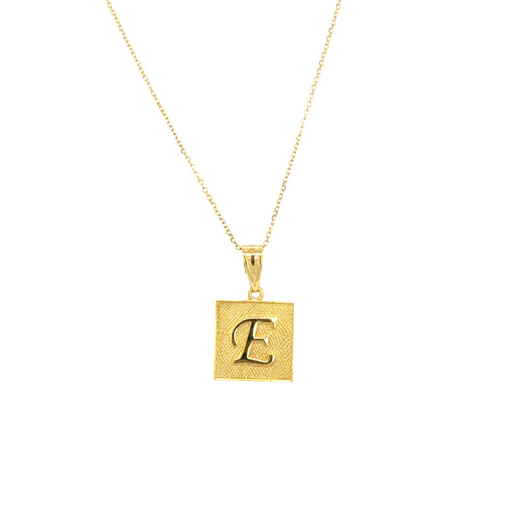 Μονόγραμμα μενταγιόν ''Ε'' σε χρυσό 14Κ τετράγωνο σχέδιο. Τιμή χωρίς αλυσίδα.