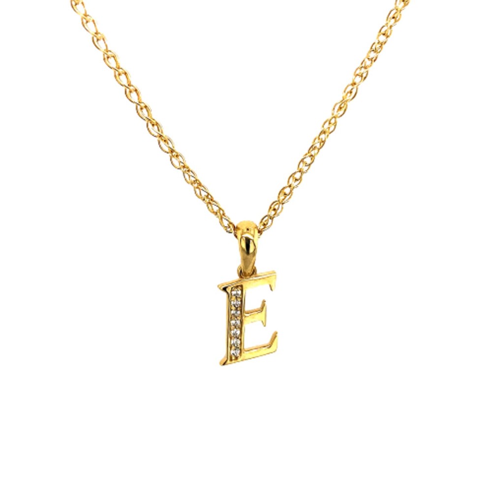 Μονόγραμμα μενταγιόν ''Ε'' από χρυσό 9Κ σε λουστρέ επιφάνεια με λευκά ζιργκόν.