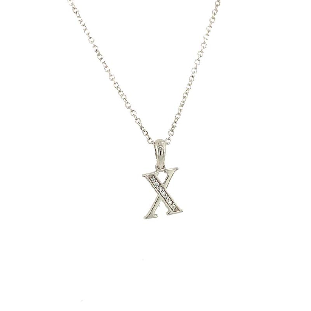 Μονόγραμμα μενταγιόν ''Χ'' από λευκόχρυσο 9Κ με λευκά ζιργκόν.