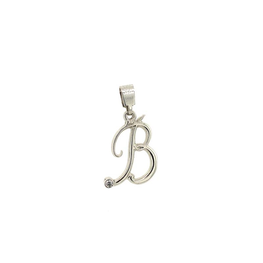 Μονόγραμμα μενταγιόν ''Β'' από λευκόχρυσο 14Κ με λευκό ζιργκόν.