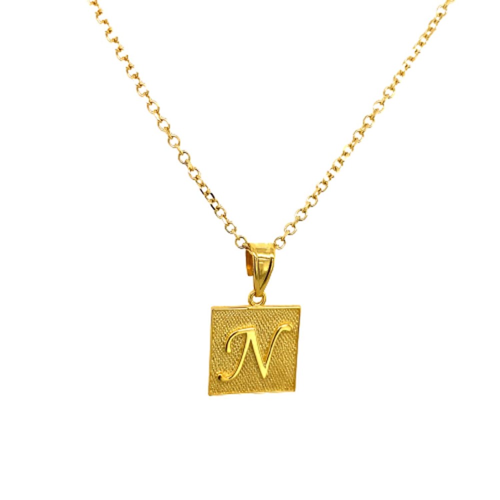 Μονόγραμμα μενταγιόν ''Ν'' σε χρυσό 14Κ τετράγωνο σχέδιο. Τιμή χωρίς αλυσίδα.