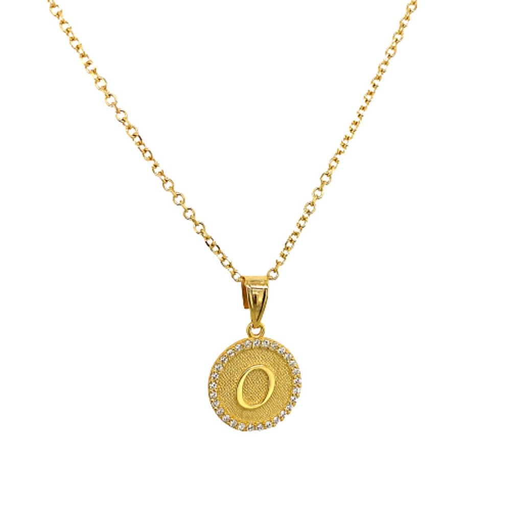 Μονόγραμμα μενταγιόν ''Ο'' σε χρυσό 14Κ με λευκά ζιργκόν περιμετρικά. Τιμή χωρίς αλυσίδα.