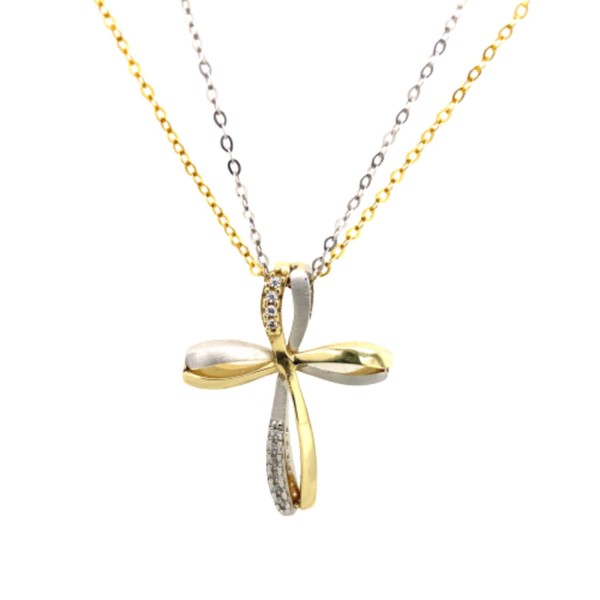 Μέταλλο: Χρυσός 14Κ, Χρώμα: Λευκό,Κίτρινο, Πέτρες: Ζιργκόν, Βάρος: 5,4gr(σύνολο), Μήκος αλυσίδας: 45,0cm, Διαστάσεις Σταυρού: 2,6cm x 2,0cm.
