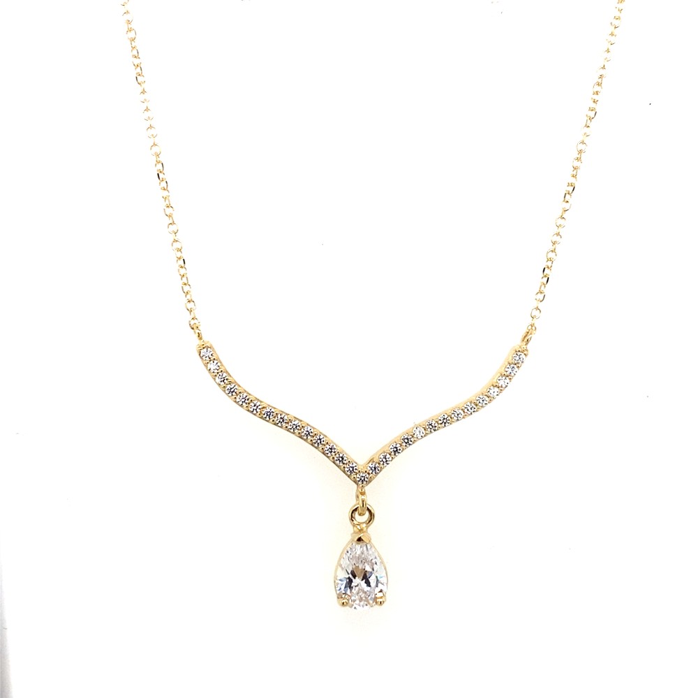 Μενταγιόν από χρυσό 14Κ πετράτο με ζιργκόν και στην άκρη σταγόνα ζιργκόν.