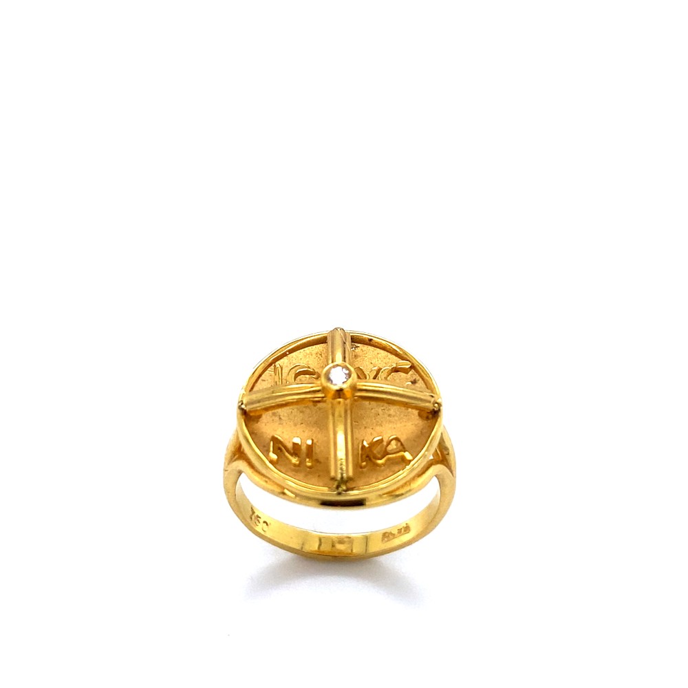 Δαχτυλίδι κωνσταντινάτο από χρυσό 18 καρατίων με πέτρα διαμάντι στο κέντρο.