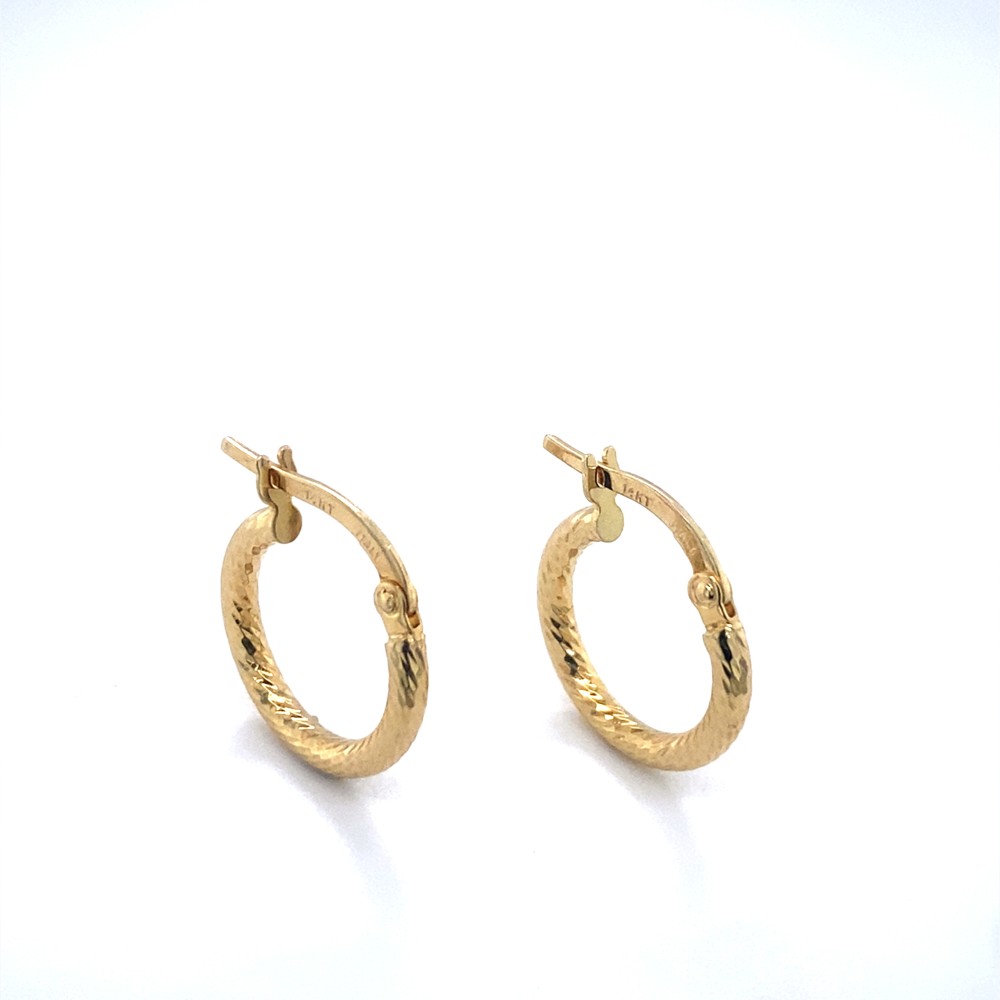 Γυναικεία σκουλαρίκια κρικάκια, με σχέδιο σαγρέ στριφτό από χρυσό 14Κ.