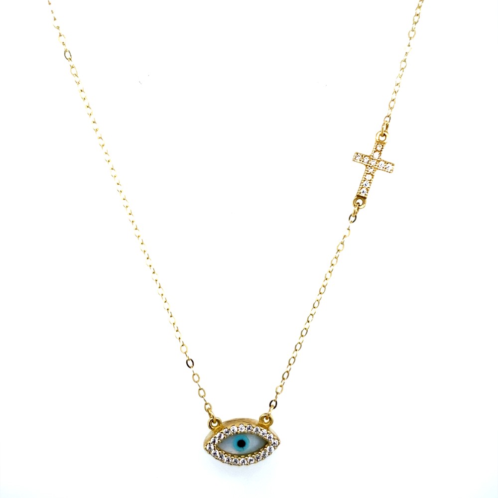 Γυναικείο κολιέ ματάκι από χρυσό 9Κ με σταυρό στο πλάι.