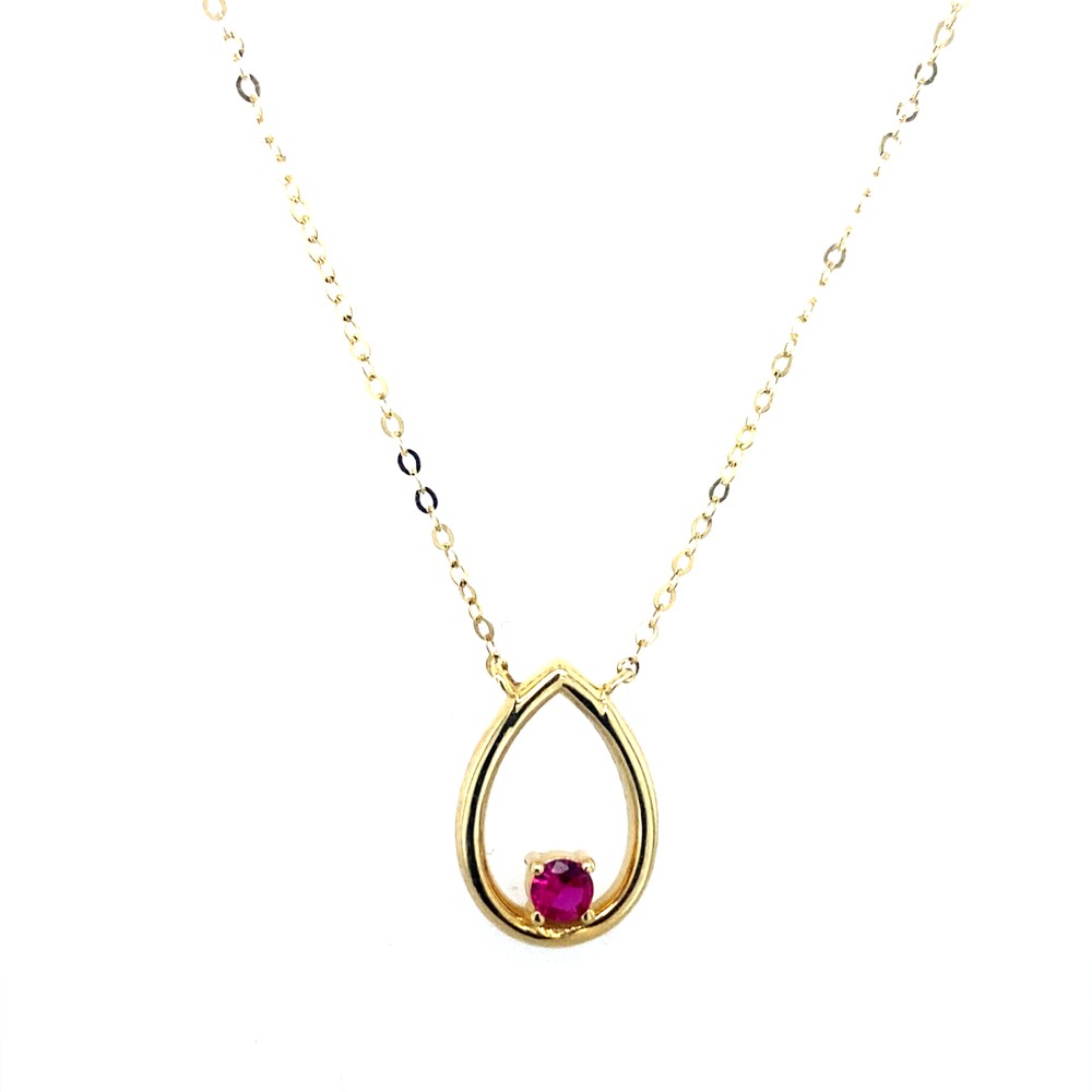 Γυναικείο μενταγιόν από χρυσό 9Κ με μοτίφ λουστρέ φινιρισμένο σταγόνα με κόκκινο ζιργκόν στο κέντρο.